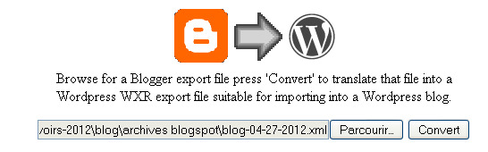 Ce site permet de convertir un fichier de sauvegarde blogger en fichier de sauvegarde WordPress