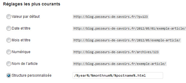 dans un premier temps, nous allons changer le format des permalink des billet.
